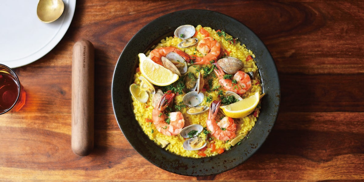 デザインと実用性を兼ね備えた、お皿になる鉄のフライパン。